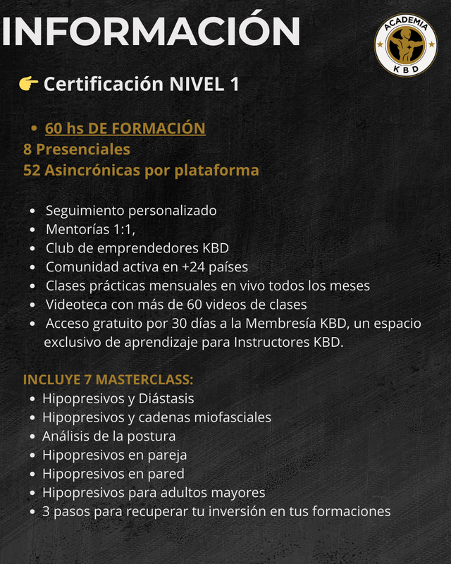 ✅ Formación de Nivel 1 con una carga horaria total entre presencial y plataforma de 48 hs.